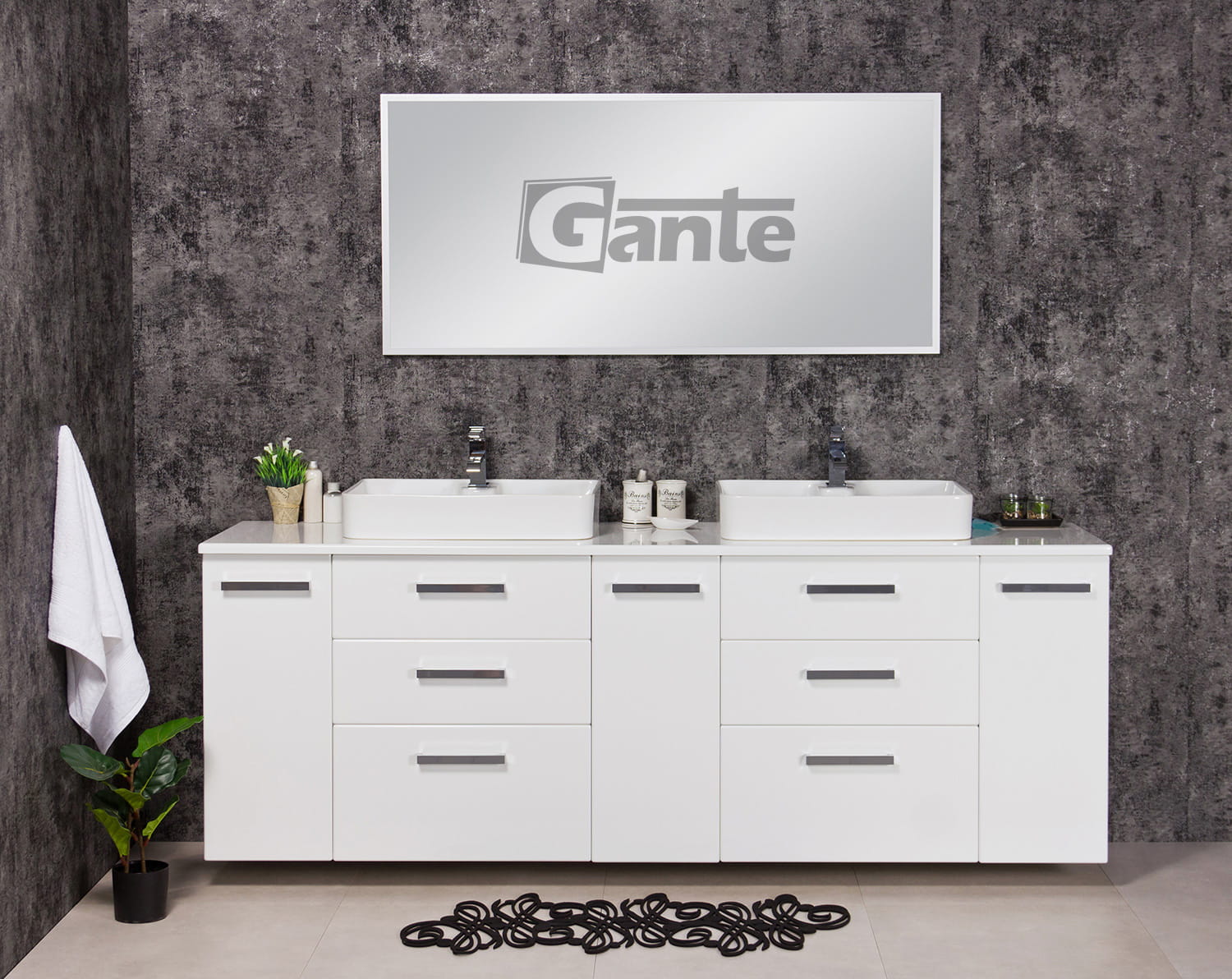 Duża szafka łazienkowa pod umywalkę Fokus 2 metry + blat+ 2 umywalki Luna