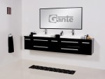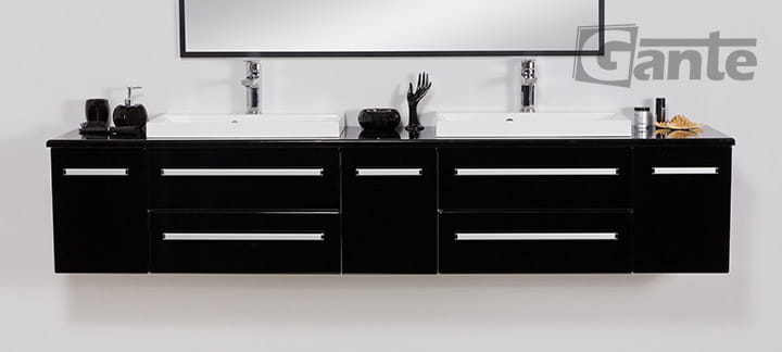 Duża szafka pod umywalkę Fokus 210/39 cm czarny połysk + blat + 2 umywalki LIV