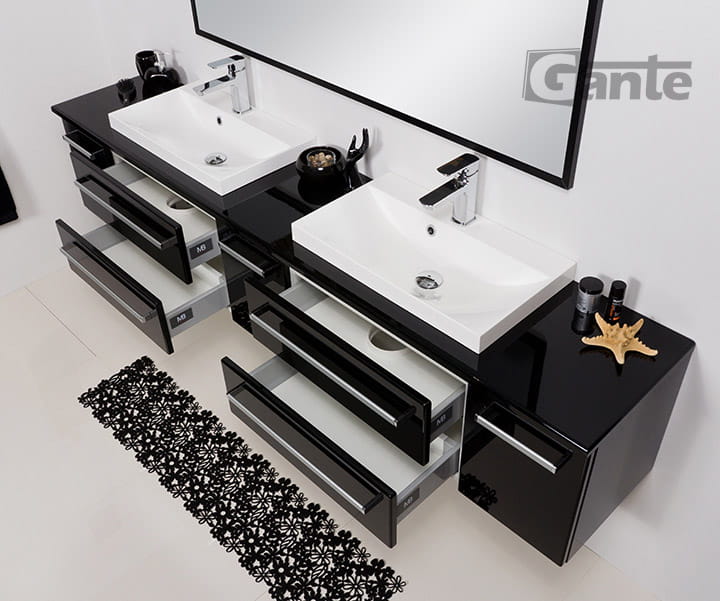 Mamy powód do chwalenia się, bo w tym meblu pomieściliśmy naprawdę wiele funkcjonalnych rozwiązań. Są tu szuflady o różnej pojemności, które pomieszczą wszystkie podręczne kosmetyki. Wysokie szuflady można przeznaczyć na stojące detergenty a szafki to idealne miejsce na ręczniki czy balsamy i pozostałe łazienkowe niezbędniki. Jest również blat z mnóstwem powierzchni do wykorzystania a 2 dolomitowe umywalki dają swobodę korzystania z codziennej toalety.