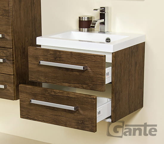 Szafka pod umywalkę 50 cm 2 szuflady antyczne drewno + umywalka biała