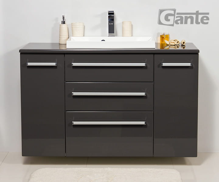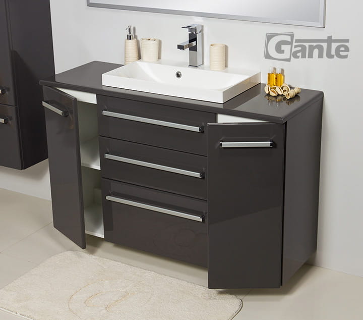 FOKUS szara szafka pod umywalkę 3 szuflady 120 cm + blat + umywalka LIV-600