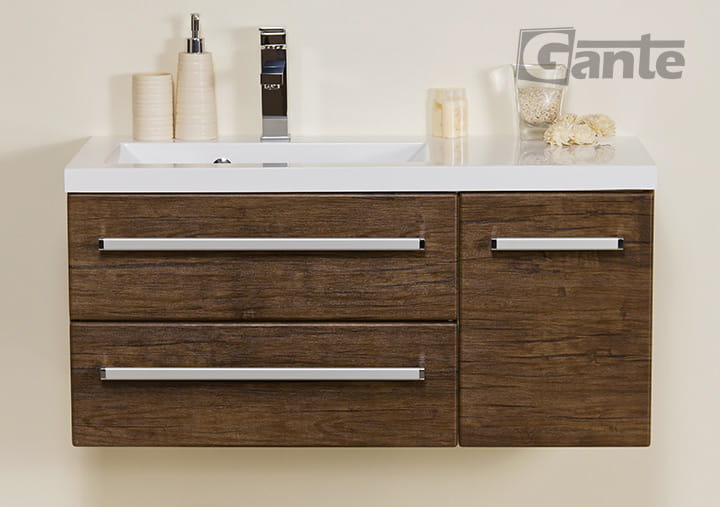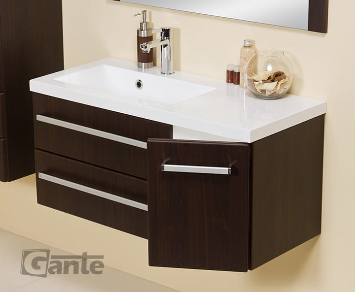 Meble łazienkowe FOKUS Szafka 90 cm wenge mat + umywalka biała [FKS-W-U90/39/2 + Clever 900L biała]