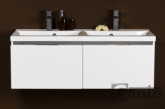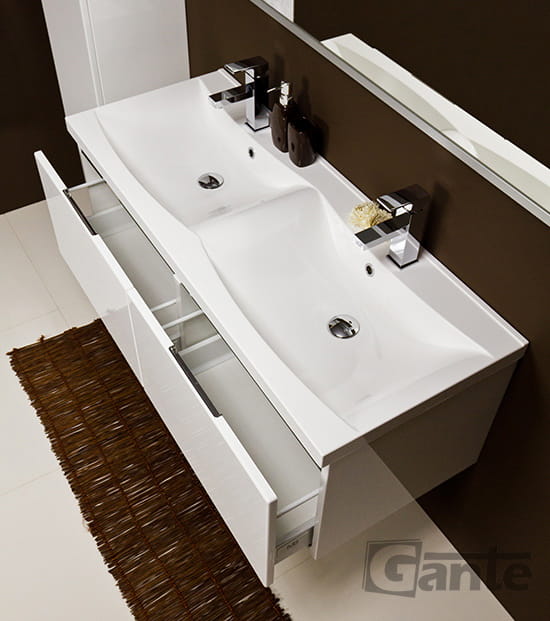 Szafka łazienkowa w wersji dwustanowiskowej z dwiema głębokimi i pojemnymi szufladami utrzymana w nowoczesnym stylu charakteryzującym się prostą formą bryły, wysokim połyskiem frontów oraz ukrytymi uchwytami. Projekty mebli Diamond zostały opracowane tak, aby w prostej formie zawrzeć niezwykłe piękno idealnie równych linii, gładkiej powierzchni i doskonałych wykończeń.