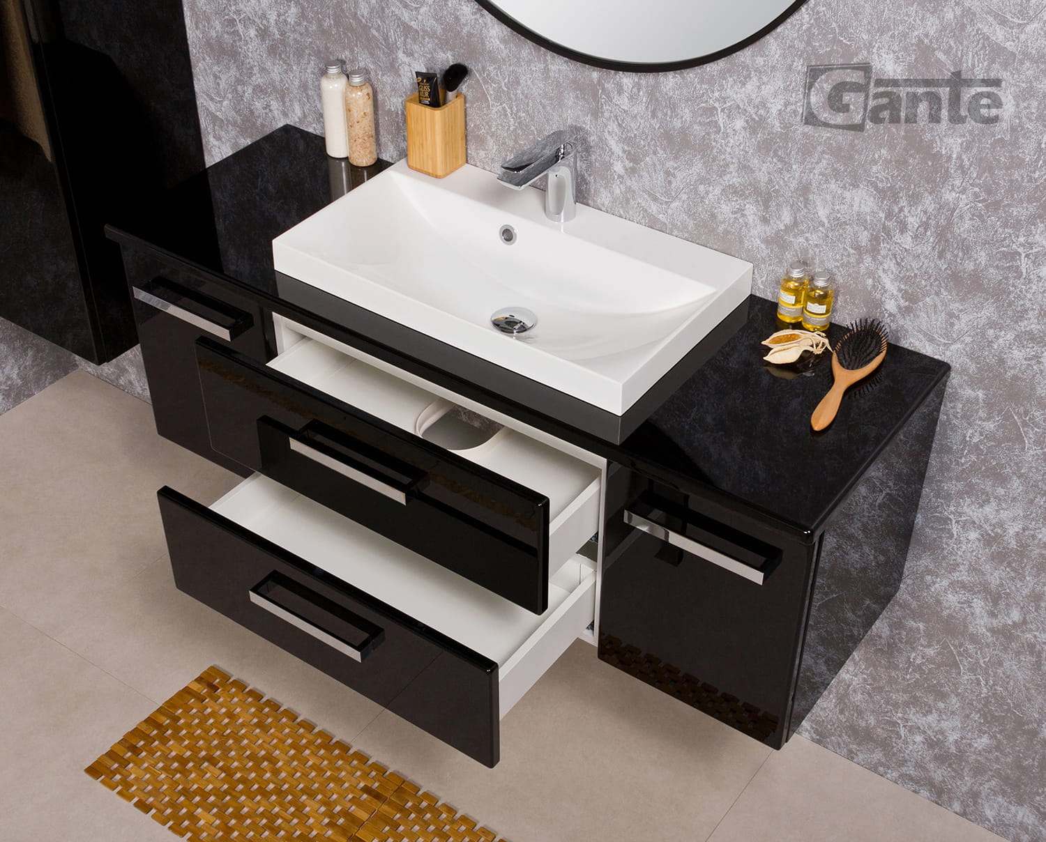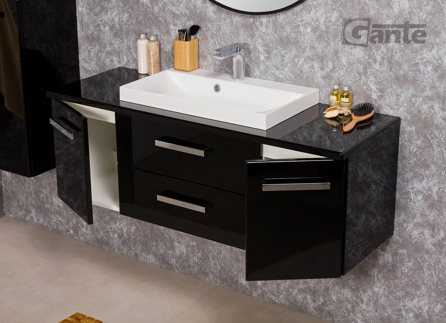 Szafka pod umywalkę Fokus z czarnym blatem 120 cm czarny połysk + umywalka
