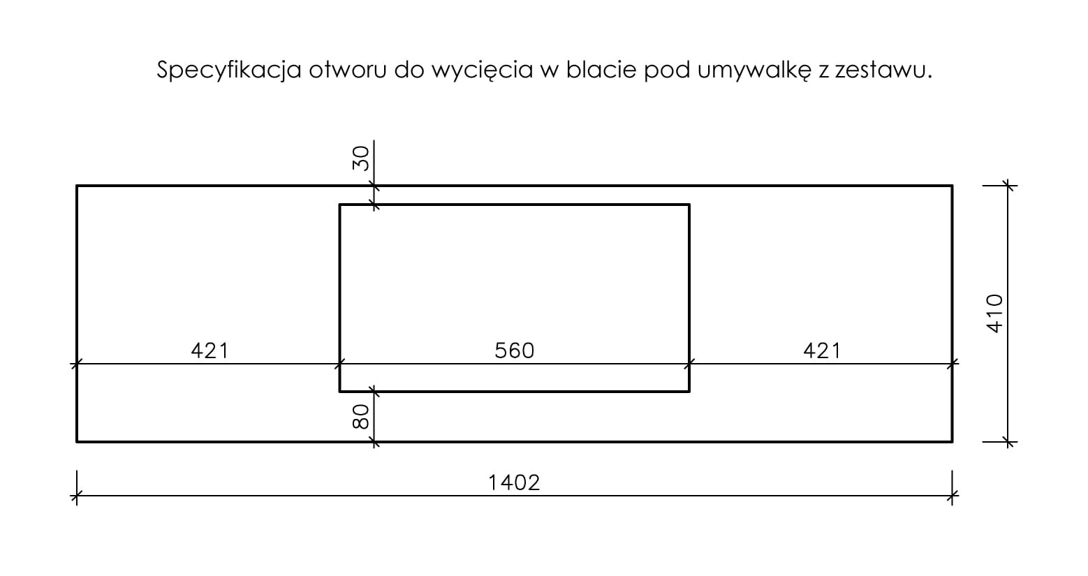 Blat jaki otrzymasz będzie pełny - bez otworu. Dzięki temu możesz w łatwy sposób dostosować go do dedykowanej umywalki z którą jest oferowany. TUTAJ instrukcja.