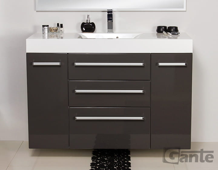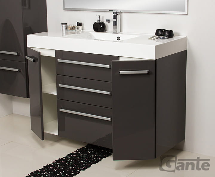 Szara szafka do łazienki 120 cm x 50 cm FOKUS + umywalka