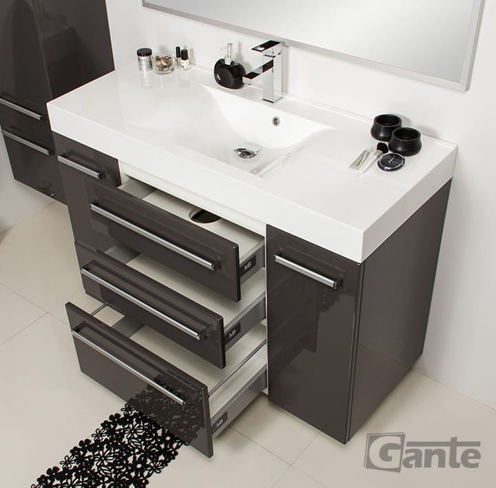 Szuflada to zawsze dobry pomysł na utrzymanie porządku i estetyki przy maksymalnej funkcjonalności. W tej szafce są aż 3 - tak więc można pomieścić w niej wiele łazienkowych niezbędników które w codziennym użytkowaniu powinny znaleźć się "pod ręką". Dodatkowo podwieszana komoda do łazienki ma tez boczne szafki z półkami w których umieścić można ręczniki albo kosmetyki w wysokich butelkach.