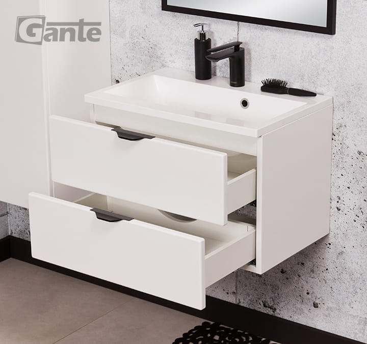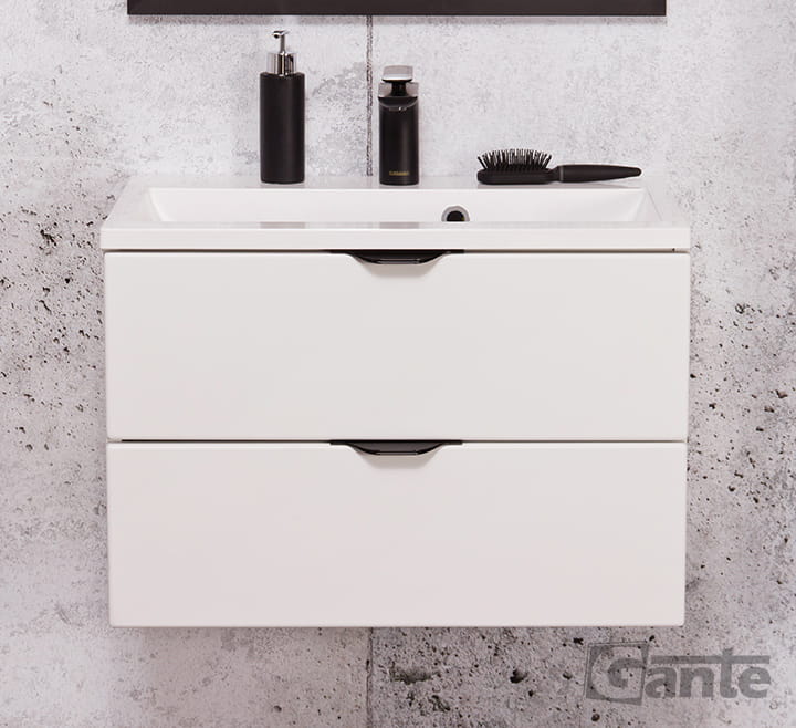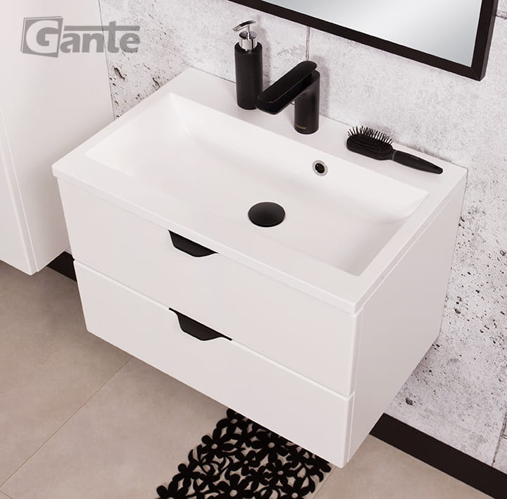 Szafka pod umywalkę 60 cm biały mat z czarnymi uchwytami a do tego zgrabna umywalka - duet idealny do stworzenia modnej łazienki