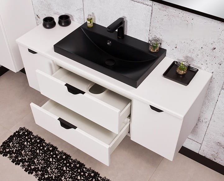 Czarna matowa umywalka do montażu na blacie z niskim rantem to świetne rozwiązanie do łazienek w których potrzebujesz wygodnych, funkcjonalnych i pięknych pomysłów