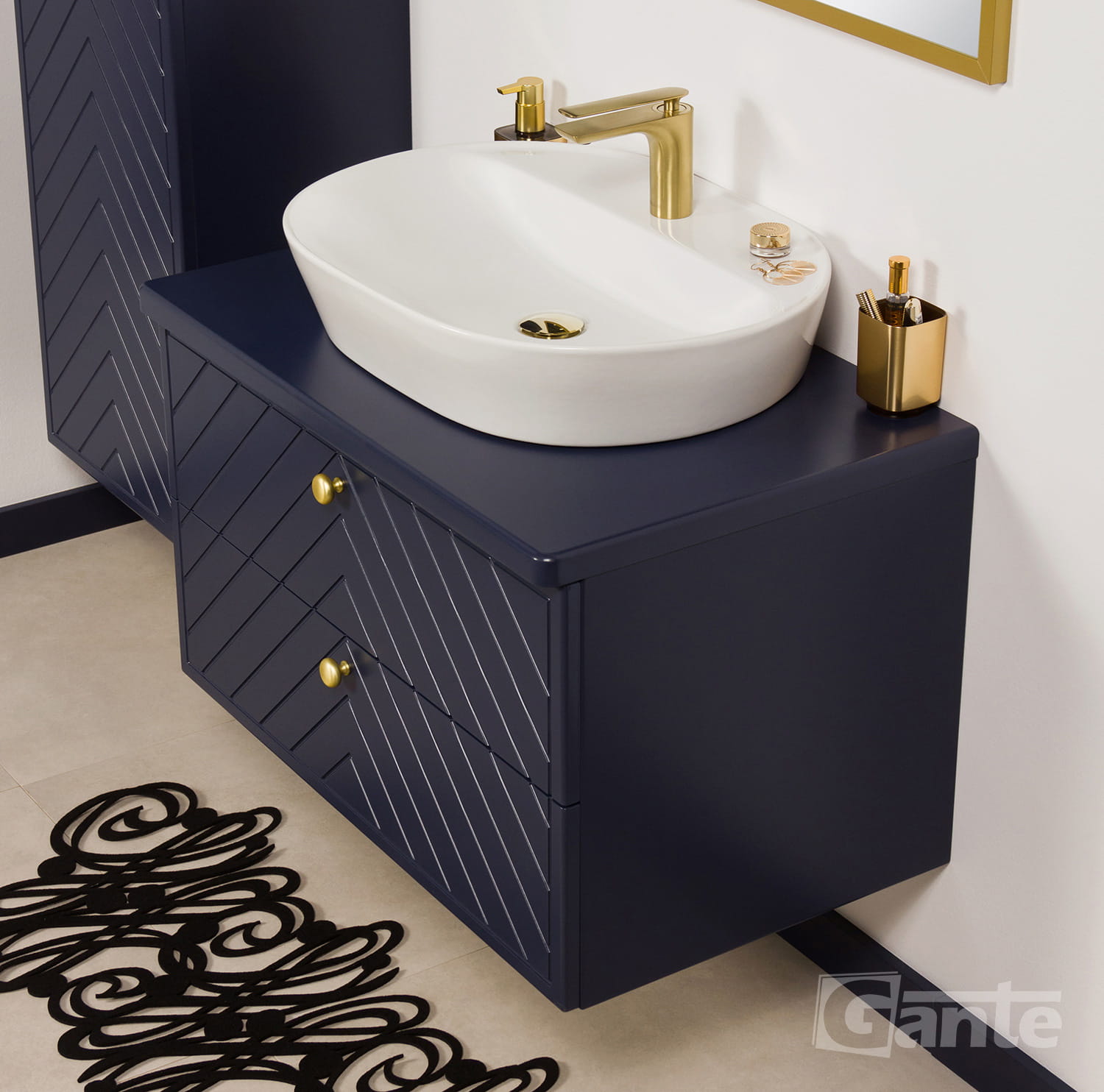 - Kolor szafki granatowy mat