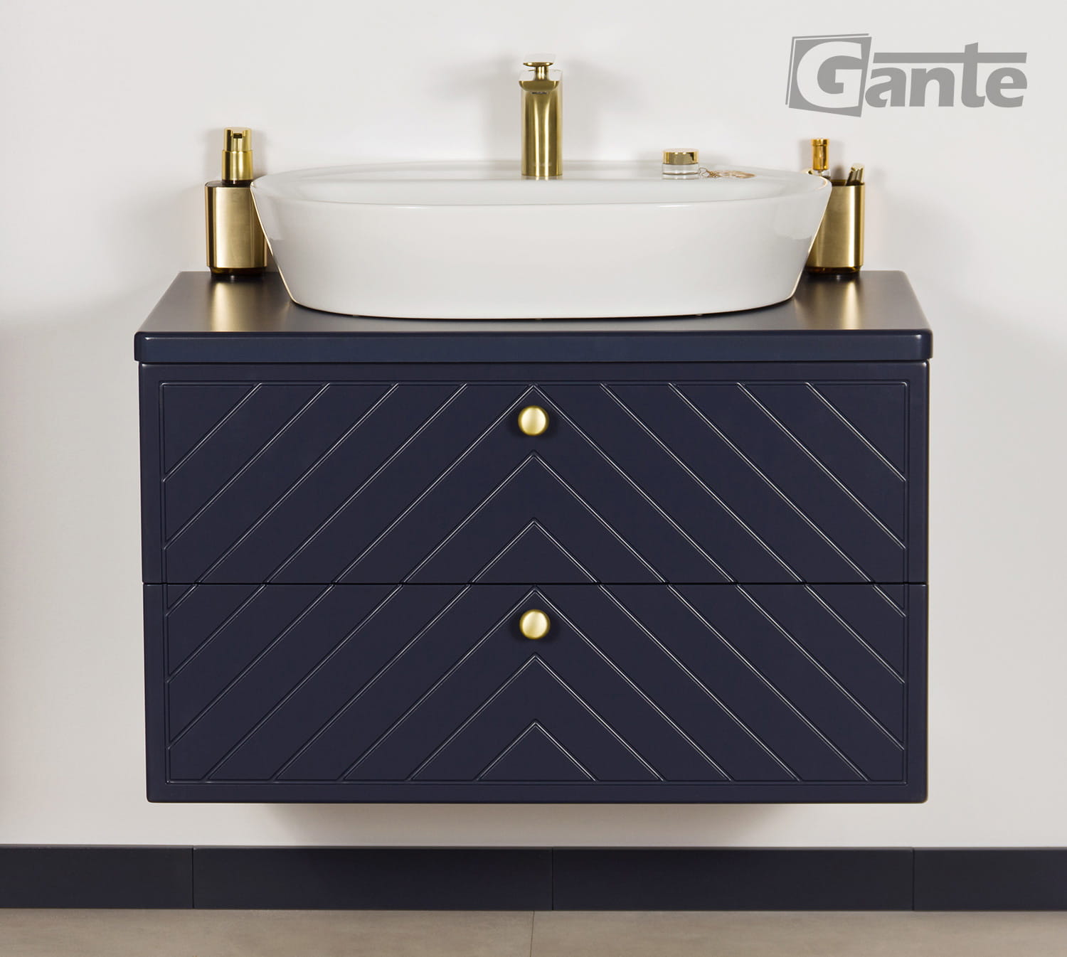 Granatowa szafka do łazienki z blatem i umywalką nablatową 80 cm kolekcja Kodi