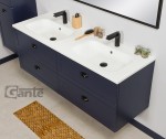 Granatowa szafka pod umywalkę 141 cm Grend + podwójna umywalka