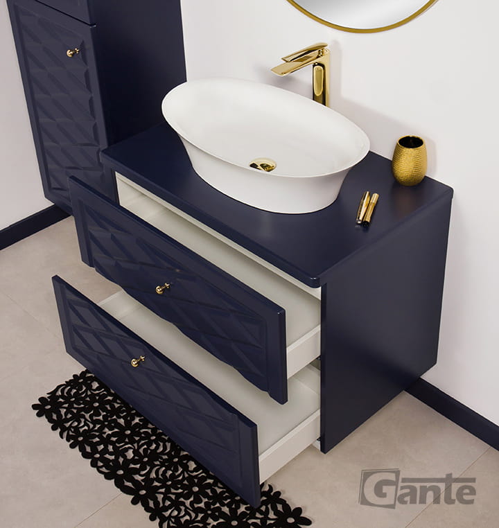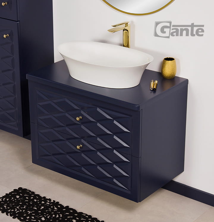 Granatowa szafka pod umywalkę Cobra z blatem 80 cm i umywalką nablatową