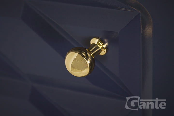 - ozdobna gałka ze szlifowanego szkła pięknie prezentuje się na satynowym wykończeniu frontów