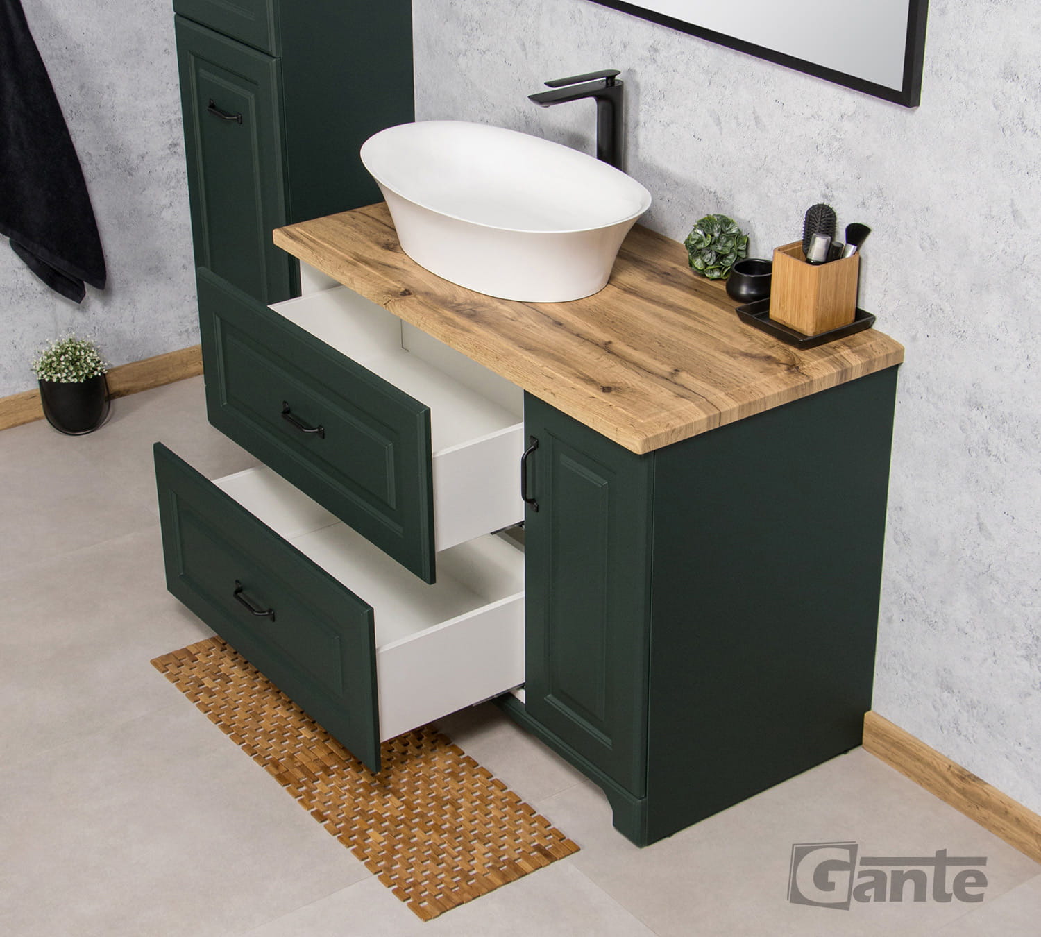 - pojemne, wysokie szuflady pomieszczą wiele łazienkowych akcesoriów