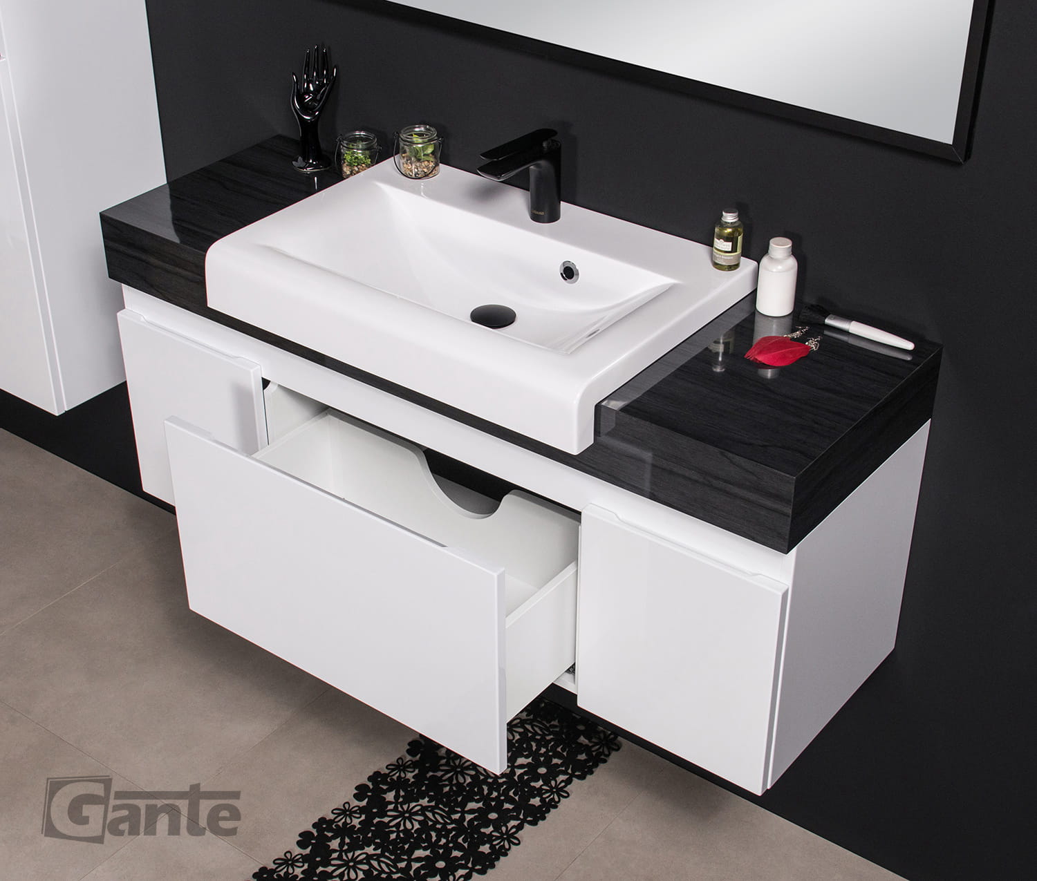 Umywalka dedykowana jest do kolekcji mebli łazienkowych Cassini o głębokości blatu 39 cm, w których występuje gruby /wysoki/ blat. Front umywalki jest na tyle wysoki że musi być zamontowany na grubym blacie.