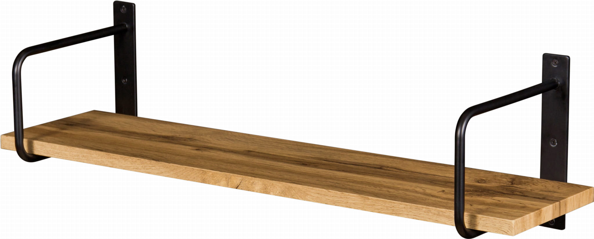 Półka łazienkowa Loft o szerokości 80 cm, w kolorze naturalnego dębu, z czarnymi matowymi wspornikami.