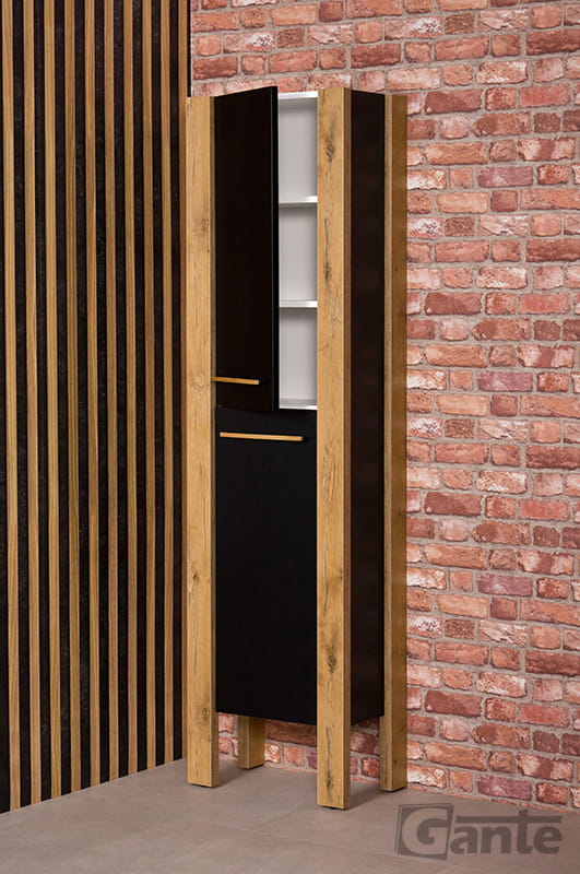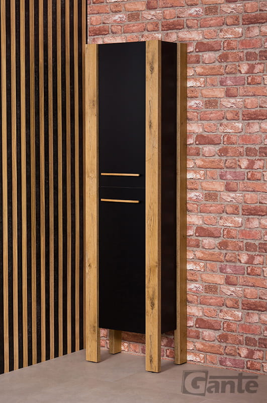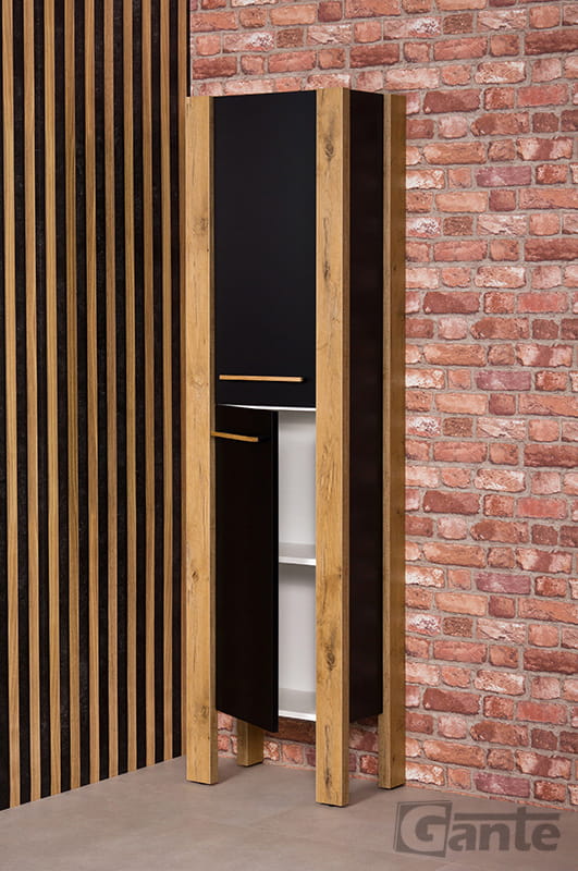 Stojący regał łazienkowy Kortez czarny mat i dąb naturalny