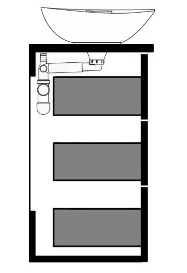 Syfon do umywalki tylnego montażu, który nie wymaga wycięcia w szufladzie szafki podumywalkowej