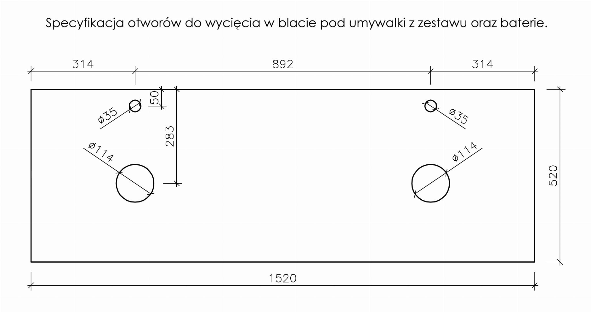 - wymiary i rozmieszczenie otworów pod umywalki i baterie znajdziesz w galerii produktu