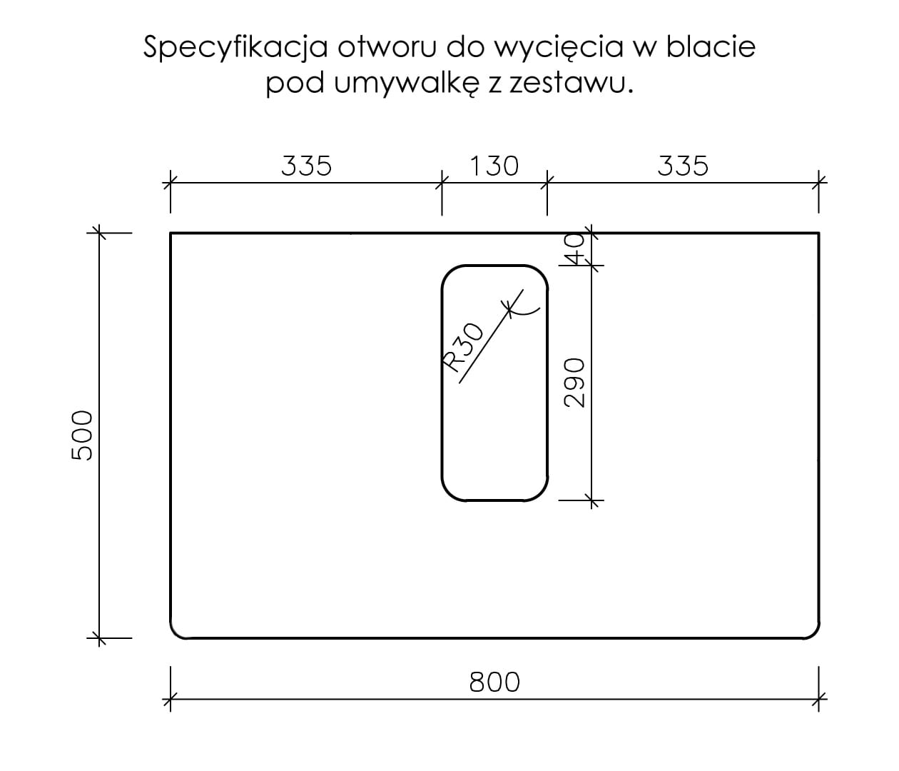 W szafkach łazienkowych z blatem otwór pod dedykowaną uymywalkę wykonasz we własnym zakresie - tutaj szczegóły