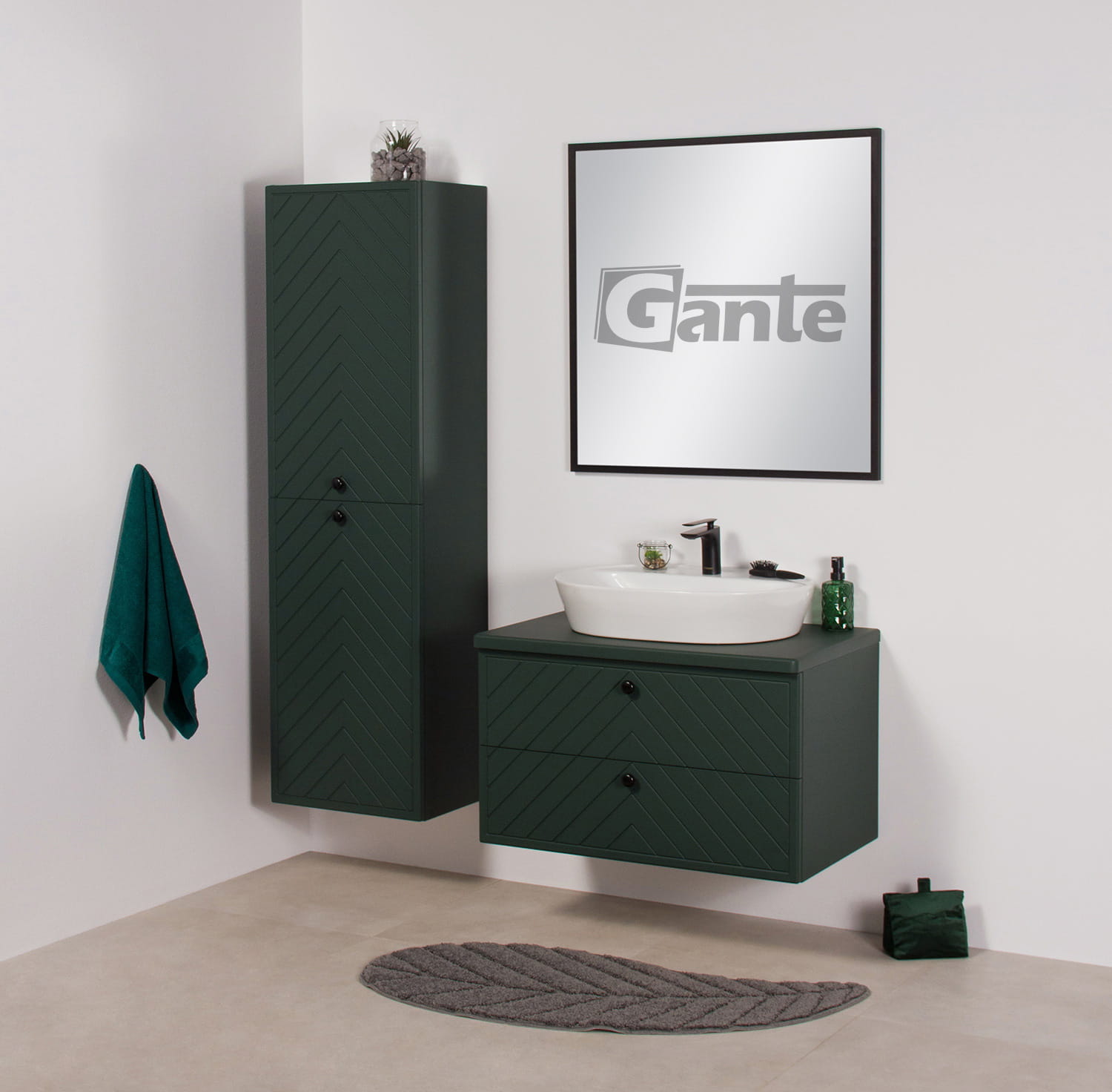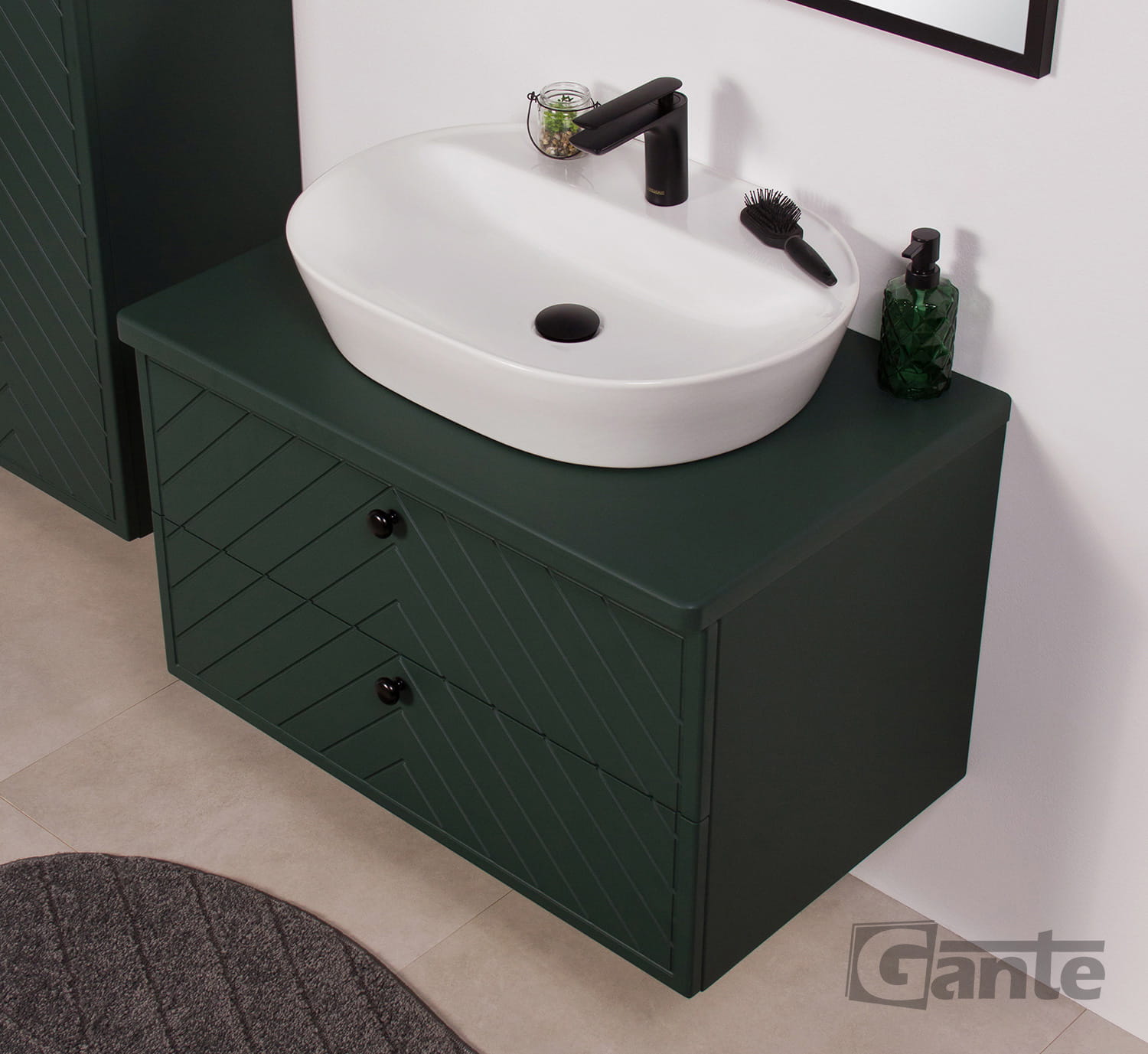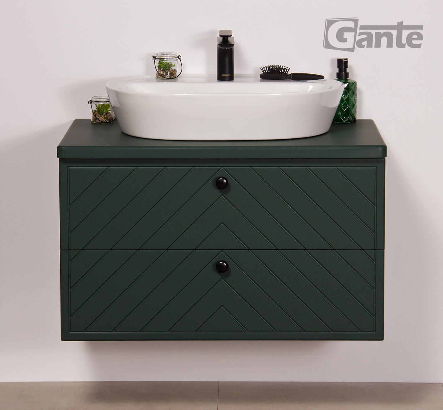 Szafka do łazienki z blatem i umywalką nablatową 80 cm kolekcja Kodi zielony mat