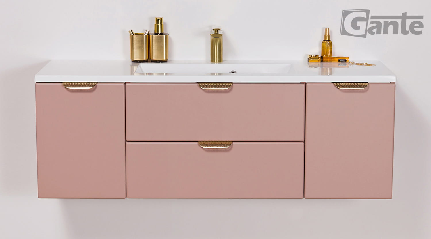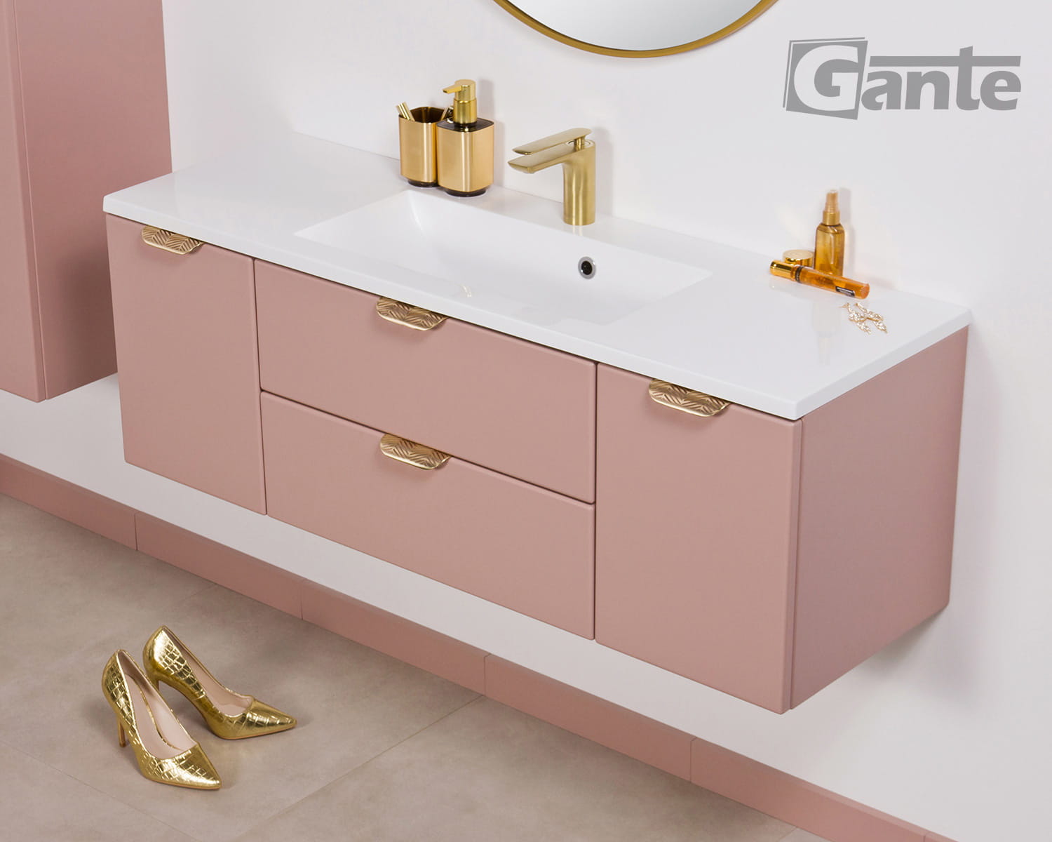 - różowe, matowe wykończenie frontów i boków to zasługa profesjonalnej folii meblowej przeznaczonej dla przemysłu meblarskiego. Dzięki temu powierzchnia mebli jest odporna na łazienkowy mikroklimat i długo będzie służyła nie tracąc swoich walorów wizualnych i użytkowych