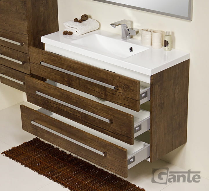 Wisząca szafka łazienkowa o szerokości 100 cm a w niej 3 szuflady + dedykowana umywalka