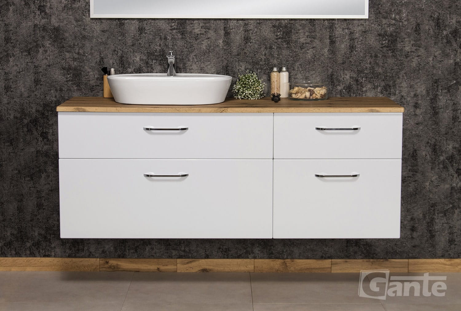 Szafka łazienkowa 4 szufladowa z blatem i nablatową umywalką