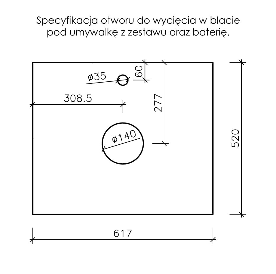 - wymiary i rozmieszczenie otworu pod umywalkę i baterię znajdziesz w galerii produktu