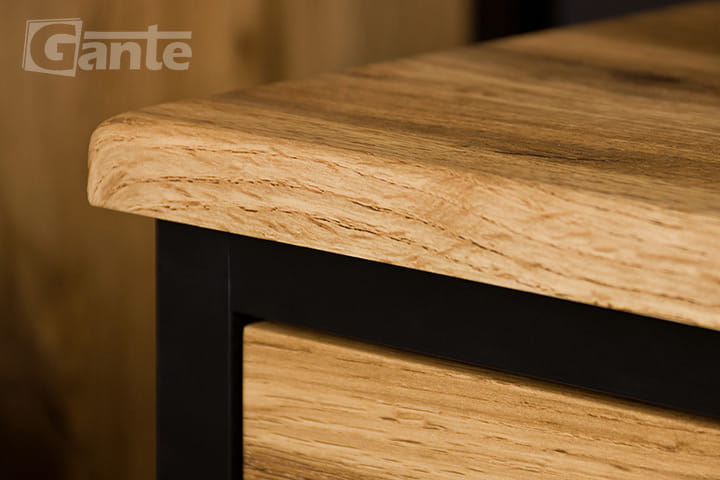 - czarne krawędziowe uchwyty sprawnie otweraja szuflady i drzwi a ich wizerunek dopełnia loftowy styl kolekcji New York