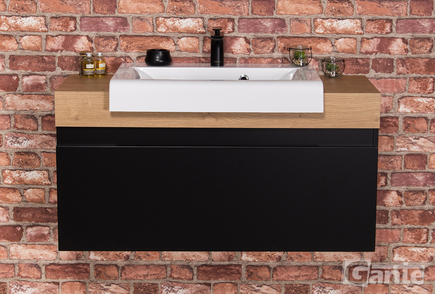 Szafka pod umywalkę 100 cm Cassini z blatem dąb naturalny i umywalką nablatową Lisa
