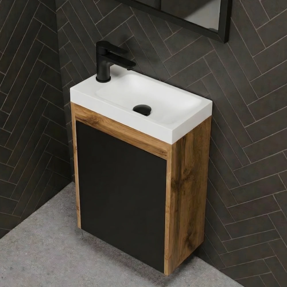 Szafka z umywalką 40 cm kolor czarny + dąb naturalny