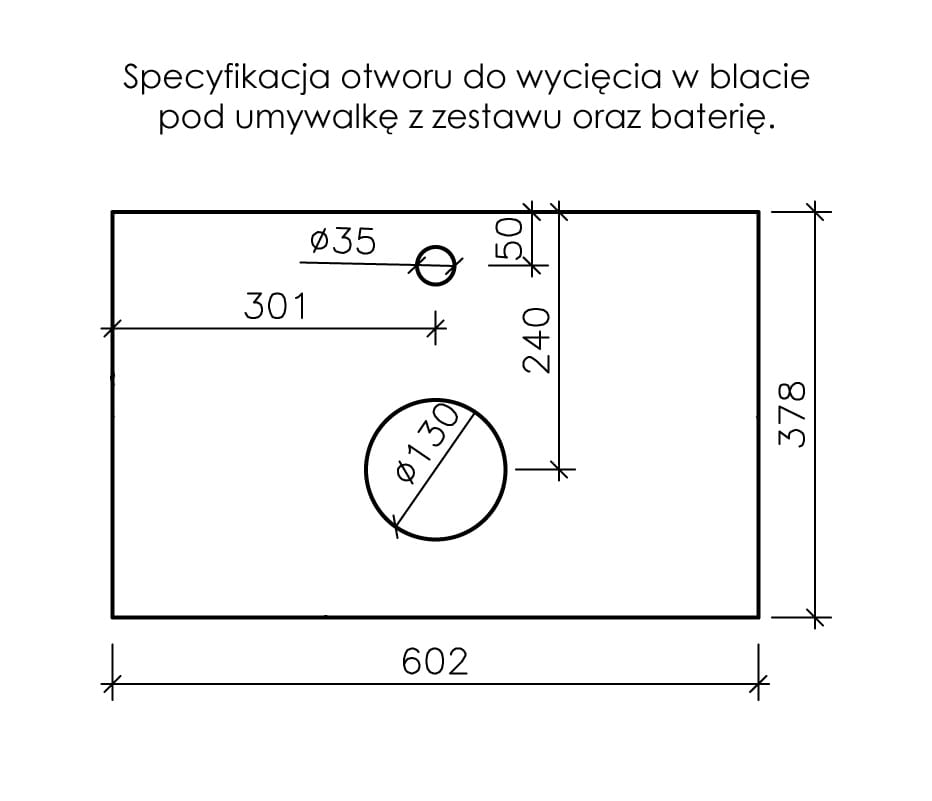 Każdy model blatu łazienkowego wykonany jest w uniwersalnej formie co oznacza, że możesz go samodzielnie dostosować do dowolnej umywalki. Rozmieszczenie i wymiary otworów pod model umywalki Miva prezentowany na zdjęciach znajdziesz w galerii produktu.