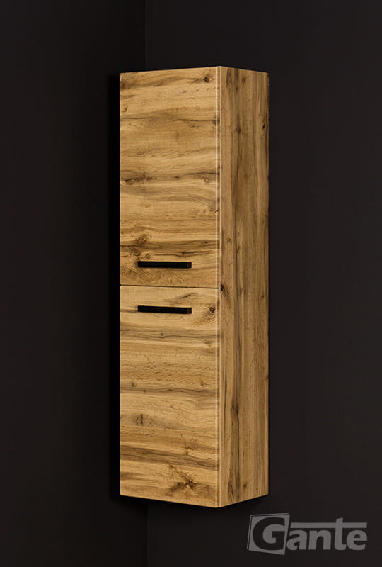 Wiszący regał do łazienki 2 drzwiowy Fokus loft kolor dąb naturalny + czarne matowe uchwyty