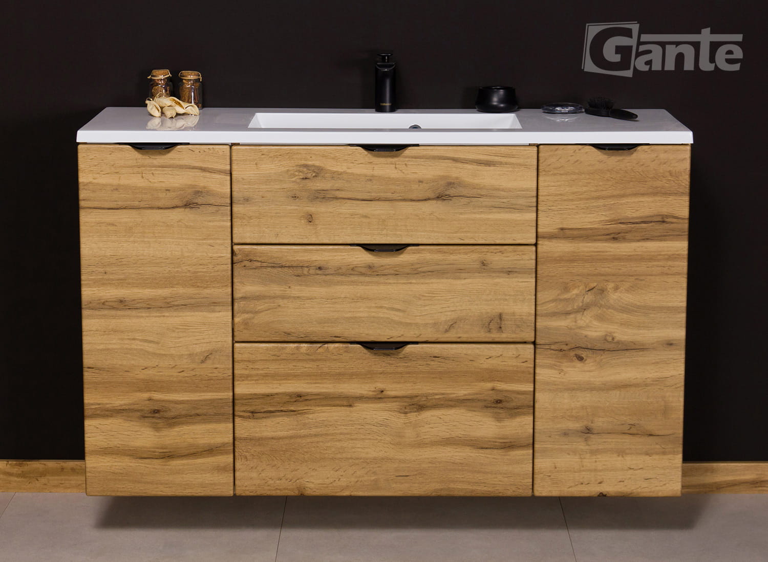Szafka łazienkowa z umywalką o szerokości 120 cm pochodzi z kolekcji pięknych mebli łazienkowych VICTA
